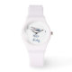 This watch features a vector graphic of a syringe with blue fluid, and the customisable text, "Nurse *your name*". The background colour can be customised if desired.