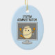 System administrator text and an egghead with a cracked shell trapped inside a computer monitor and tangled in a cord is a humourous design for your favourite IT geek.