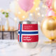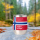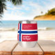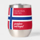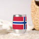 Celebrate Syttende Mai, the Norwegian Constitution (National) Day, with this striking May 17th stainless steel stemless wine tumbler, which features the iconic red, white, and indigo blue colours with the Scandinavian cross of Norway's national flag. Reverse shows identical design.