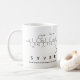 Syver spelled out in amino acids as S Y V E R (Serine Tyrosine Valine Glutamic acid Arginine) on a mug for the scientist in you.