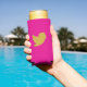 KEEP YOUR DRINK COLD WITH YOUR NEW HOT PINK & GOLD T BIRD DESIGN SLIM SELTZER COOLER!