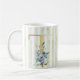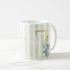 T golden initial blue and white stripes, coffee mug
