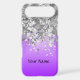 Easily personalise this chic elegant girly faux silver metalic glitter sparkle bling and purple satin look background with your custom text, name or monogram initials to make a unique sophisticated personalised gift. Click Customise to adjust the text / font size or style. PLEASE NOTE the silver is not metallic, sparkly, shiny or glittery.