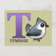 A cute Birdorable Tufted Titmouse perches by a purple letter T. You can totally customise this gift! Move the design around, change the background colour or style, add your own text or images -- make it your own!