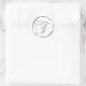 T Monogram Faux Silver Envelope Or Favour Seal. These classic round stickers are printed with non metallic ink on a flat sticker to look like silver. They are not beveled or embossed monograms but are designed to look like they are beveled or embossed monograms. These silver monogram seals are printed on a white background unless you select a different colour background before you proceed to checkout. In addition to being pretty wedding stationery supplies, these elegant wedding invitation envelope seals also make great monogrammed custom Christmas card seals, personalised holiday greeting card envelope seal stickers and customised Xmas card monogram seal stickers.