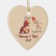 Celebrate the bond between mother and child with our enchanting heart-shaped ornament, featuring a heartwarming illustration of a T-rex and her baby. Adorned with the heartfelt phrase "Our First Mother's Day together," this ornament captures the special milestone of a new mother's journey. Personalise it with your mum's name, your little one's name, and the memorable year, creating a cherished keepsake she'll treasure forever. Hang it on the rearview mirror of a car, display it on a Christmas tree, or showcase it in a special spot at home or office. Crafted with love and care, this ornament is the perfect way to honour the extraordinary love of a mother and her child.