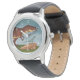 The leather band makes it seem like an “older kids” watch.   Easy to read the time. Clear printing and image.