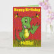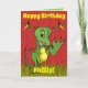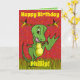 A cute T-Rex makes up this fun birthday card. Customisable so you can add your own text and change the background colour.