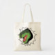 A T-Rex busting out of the bag with its mouth open and showing off teeth.