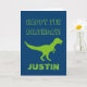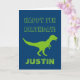 Personalized T rex dinosaur Birthday greeting card for kids. Cute Birthday card idea for boys and girls. Green prehistoric Tyrannosaurus rex animal design with customizable color background. Personalized wild trex for children. Fun for kindergarten, grammar school, elementary school kids. Add your own name. Also available as big extra large oversized card. Fun for 5th 6th 7th 8th 9th 10th Bday etc. Add your own age number. Cool cards for nephews 1st Birthday, son, grandson, friend, brother etc.