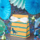 Yellow and blue stripes pattern, dinosaur T-rex cartoon, boy baby shower, boy birthday