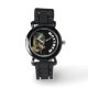 This dynamic watch design features a fierce T-Rex roaring against a sleek black background, perfect for dinosaur loving kids of all ages. The bold dinosaur image is complemented by a customisable name displayed in sharp, white block letters, adding a fun and personalised touch to the watch face. Ideal for anyone who enjoys prehistoric themes, this watch combines playful design with practicality, making it a standout accessory for daily wear. The detailed T-Rex artwork adds an adventurous vibe, perfect for showcasing your love for dinosaurs in a unique and stylish way.