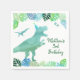 This adorable design features hand painted watercolor dinosaurs and tropical leaves.