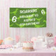 T-rex dinosaur theme Birthday party welcome banner sign. Fun prehistoric animal design for children. Personalise with name and age. Green t-rex dino silhouette print.
