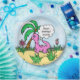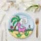 Cute hand drawn cartoon pink dinosaur birthday plates for a little girl's dinosaur themed birthday party.