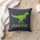 Custom T Rex dinosaur throw pillow cushions for kids bedroom, play room or nursery room. Green prehistoric Tyrannosaurus rex animal design with customisable colour background. Personalised wild trex silhouette for children. Fun for kindergarten, grammar school, elementary school child. Cute Birthday or Christmas gift idea for boys and girls. Fun dinasaur home decor and accessories for sofa, couch or bed. Make your own for son, grandson, newborn baby, nephew etc.