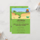 A fun birthday party invitation with a dinosaur theme. The design features a fierce T-Rex in an arid landscape with a distant erupting volcano. The Tyrannosaurus is green with purple markings. All wording can be fully personalised with the details of your child's second birthday party. The theme is tied together with a dinosaur footprint pattern on the reverse of the invite.