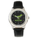 Green trex dinosaur watch personalised with kids name or monogram letter. Cute prehistoric t rex timekeeper clock design for little boys birthday party. Make one for son, grandson, new baby, grandchild etc. Wild Pre historic t-rex animal cartoon illustration for children. Tyrannosaurus rex.