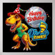 This is an AI generated image. I wanted to have the T-Rex wearing a Running outfit and a birthday hat. I liked this image because it had the text Happy Birthday Dino Mite runner. And also I liked the foot by the text.