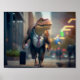 If the dinosaurs weren't extinct. T-Rex wearing suit carrying briefcase walking city streets.