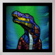 The T-Rex: A playful and vibrant print with a cartoon-like dinosaur in bright and bold colors that is sure to bring a smile to everyone's face and liven up any boy or girl's room decor. This print is sure to inspire curiosity and spark a child's imagination and love for prehistoric creatures.