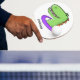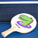 This ping pong paddle has an illustration of cute cartoon T-Rex head popping out of a purple ring. You can personalise it by putting your name on it using the template. It is a fun design suitable for all.