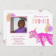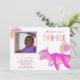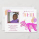 T-Rex Pink Photo Two-Rex Cute 2nd Birthday Party Invitation