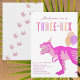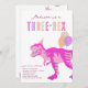 T-Rex Pink Three-Rex Dino Third 3rd Birthday Invitation