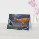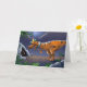 Teddy the T-Rex has fun on Halloween in this greeting card.