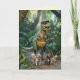 A cute dog greeting card featuring T-Rex walking his small dogs in the jungle.