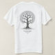 This design features a complex, monochromatic illustration of a tree rich in detail and symbolism, set against a stark black background which enhances its ethereal and mysterious quality. The artwork suggests themes of nature intertwined with fantasy elements, possibly hinting at stories or legends associated with trees and witchcraft