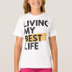 Wear your positive mindset proudly with this trendy LIVING MY BEST LIFE graphic!