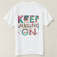 The "Keep Laughing On" T-shirt showcases a lively and encouraging design that radiates positivity. The phrase is presented in bold, vibrant lettering, surrounded by playful elements like abstract shapes or a stylised smiley face. This design is a reminder to embrace joy and resilience, no matter the challenges. Perfect for anyone who values humour and optimism, this t-shirt is both a statement piece and a mood booster.