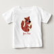 Customisable Baby T-Shirt with an illustration of a cute red squirrel holding a peanuts, with a beige circle in the background, a cute animal design for kids by Radka Kavalcova