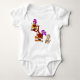 This white baby garment features a cartoon rooster with wild eyes and flailing limbs, clearly startled by a tiny, smug worm grinning beside him. The exaggerated expressions and classic predator-prey humour make it a fun, animated-style design perfect for little fans of slapstick comedy and silly animal antics.