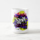 The design explodes off the shirt with a high-contrast yellow background, overlaid with fragmented layers of purple, black, and hot pink flames. The central text is rendered in different styles—from blocky grunge to graffiti script—giving it an aggressively layered, street art aesthetic. Details like the barcode and halftone dots add a distinctive cyberpunk/industrial vibe. This piece is perfect for fans of cyberpunk literature/movies, grunge music, abstract art, and anyone who favors bold, high-energy streetwear.