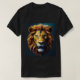 The focal point of the t-shirt showcases a majestic lion, its golden mane flowing in the wind, and its powerful eyes radiating a regal aura. The lion's mouth is wide open in a mighty roar, revealing sharp teeth and conveying strength and dominance. The intricate details capture the raw beauty of this magnificent creature.