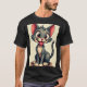 Imagine a playful, cartoon-style cat with a cheeky expression on a T-shirt, giving off major "catitude." The cat stands in a relaxed, slightly slouched pose, wearing oversized sunglasses and a backward baseball cap. One paw is raised, as if giving a cool wave or a thumbs-up, while the other holds a cup of coffee (or maybe a fish-shaped treat). The fur is fluffy with exaggerated, comic-style lines for added character. The colours are vibrant and bold, giving the design a fun, eye-catching look. Above the cat, a bold title reads, "Too Cool for Hoomans."