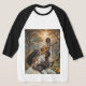 I bought the Men's Basic 3/4 Sleeve Raglan T-Shirt, White/Navy. It arrived on time for a gift and is of a great quality and fits perfectly! So cute! Zazzle has done it again! The printing was clear and filled in solidly.