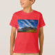 100% cotton so perfect for summer, It is a nicely designed t-shirt, the fabric is soft and the seams finished well, the body of the t shirt has no side seams. I bought a medium size for my two grandsons, aged 9 and 8 it will be slightly big on them but I would rather that than too small