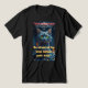The design is made in a dark, mystical style with horror elements. In the centre of the image is an expressive grey cat with yellow eyes, sitting among coals with tongues of flame. The background is decorated with carved wooden elements, creating the atmosphere of an ancient castle. The text is designed in contrasting colours: the upper part is in red and grey tones, and the lower part is in yellow, emphasizing the ominous meaning of the phrase. The overall composition creates a feeling of mystery and tension.