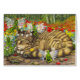 Acrylic ink – A chunky tabby tom cat snoozing in a poppy field whilst mischeivious faeries decorate him with flowers. Cat buckaroo.