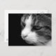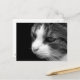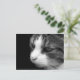 A beautiful black and white portrait of a tabby cat makes this a beautiful addition to your cat postcard collection.