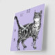 Tabby Cat Cats Art Animal Pastel Purple Lavender Square Wall Clock