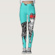 Tabby Cat Cool Animal Black and Aqua Leggings