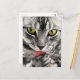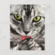 Tabby Cat Feline Green Eyes Close Up Licking Paw Postcard
