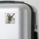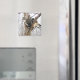 This square magnet features a tabby or tiger cat standing in a tree guarding her property.