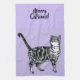 Tabby Cat Merry Christmas Purple Lavender Pastel Tea Towel