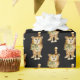 tabby cat on black wrapping paper