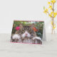 Tabby Cat On Tree Stump With Bougainvillea Card